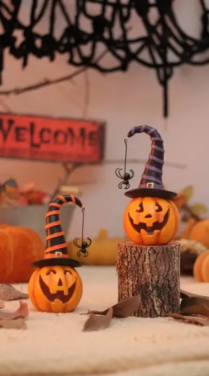 Halloween Horror Pumpkin Wizard + Spider Halloween Decor Props Party Scary Prop House Decoration