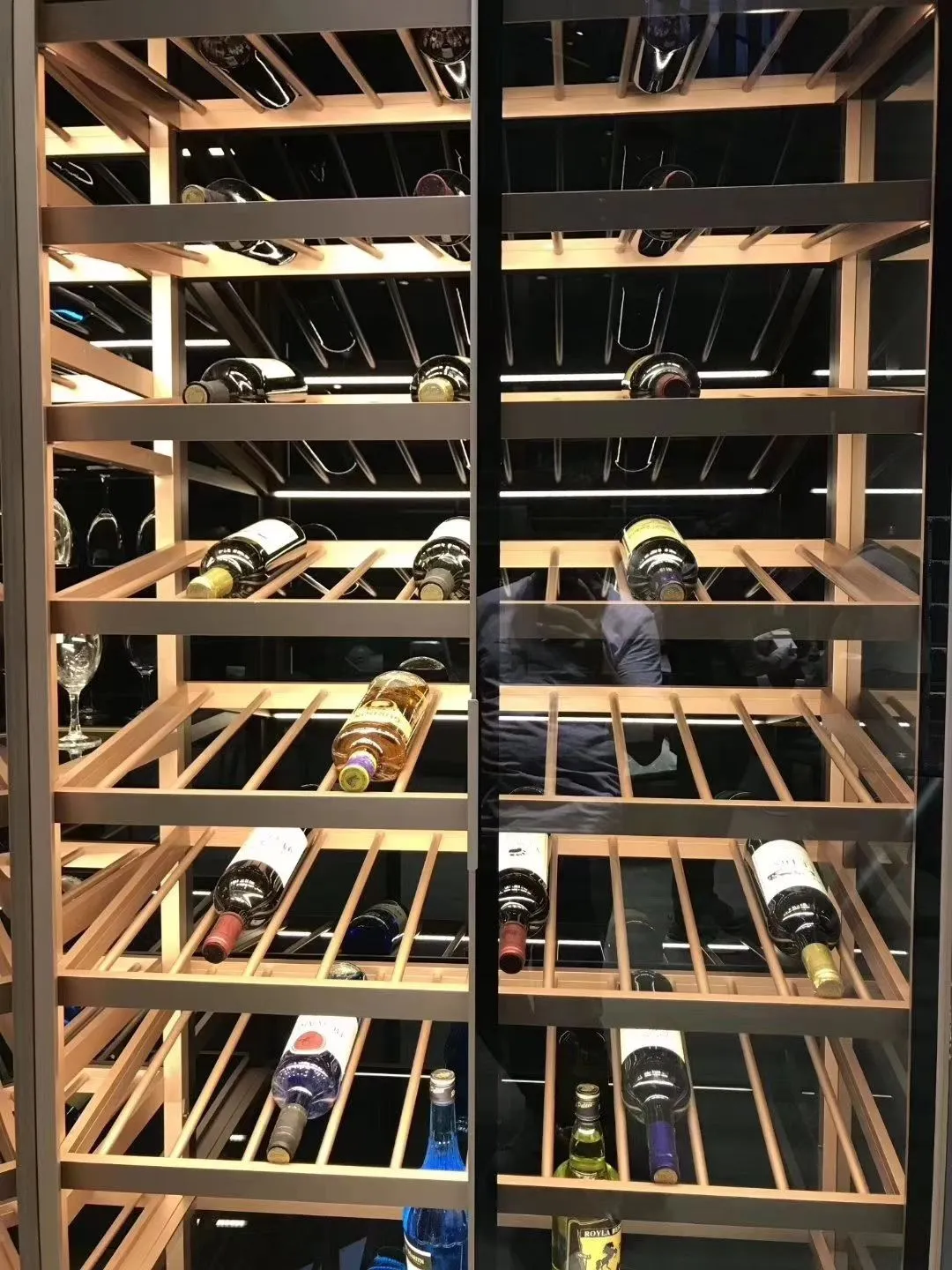 Luxury Custom Size Wine Display Cabinet Shelf Glass Wine Racks Deep Gray Black Color